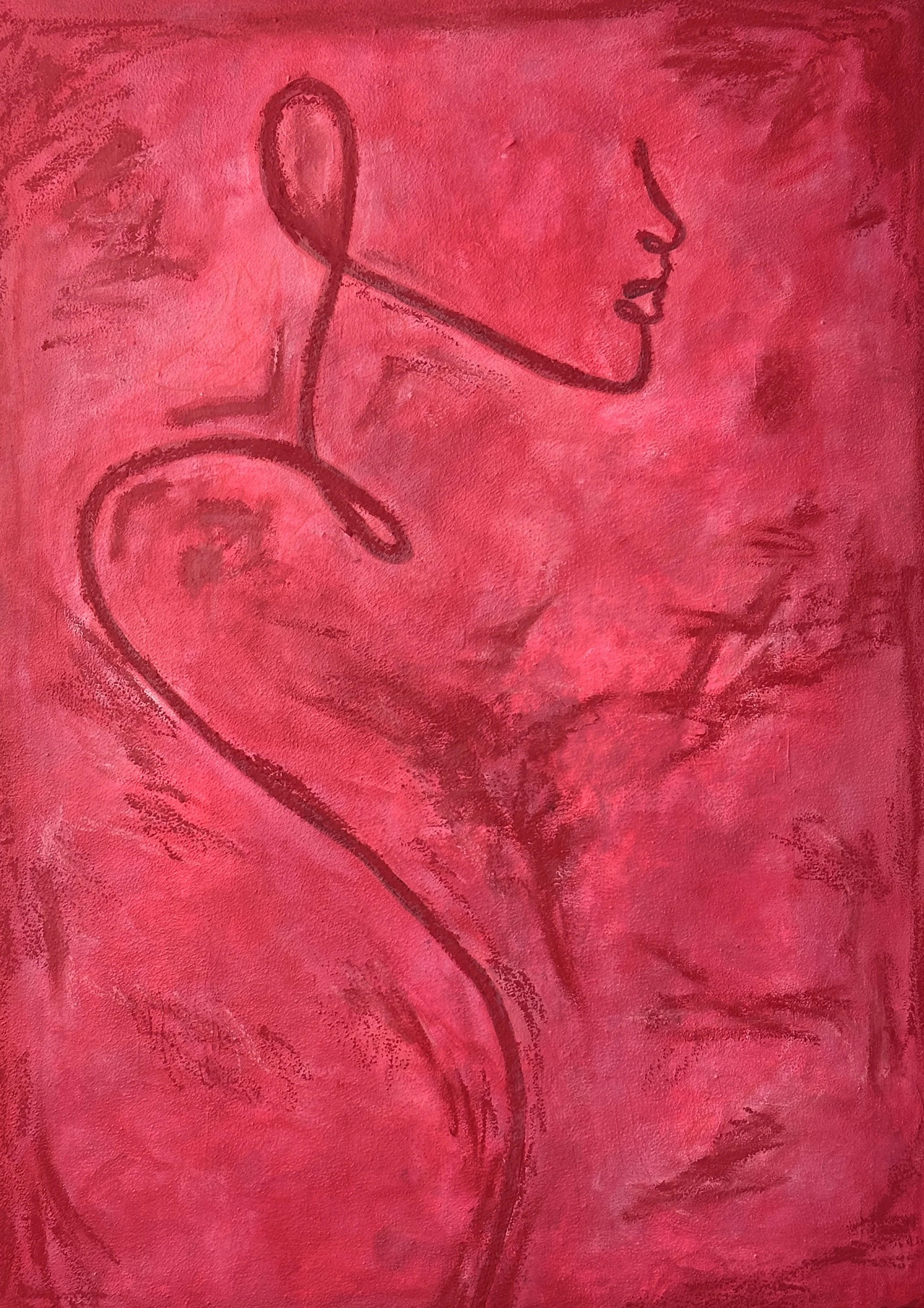 acrylic and oil pastel on upcycled canvas