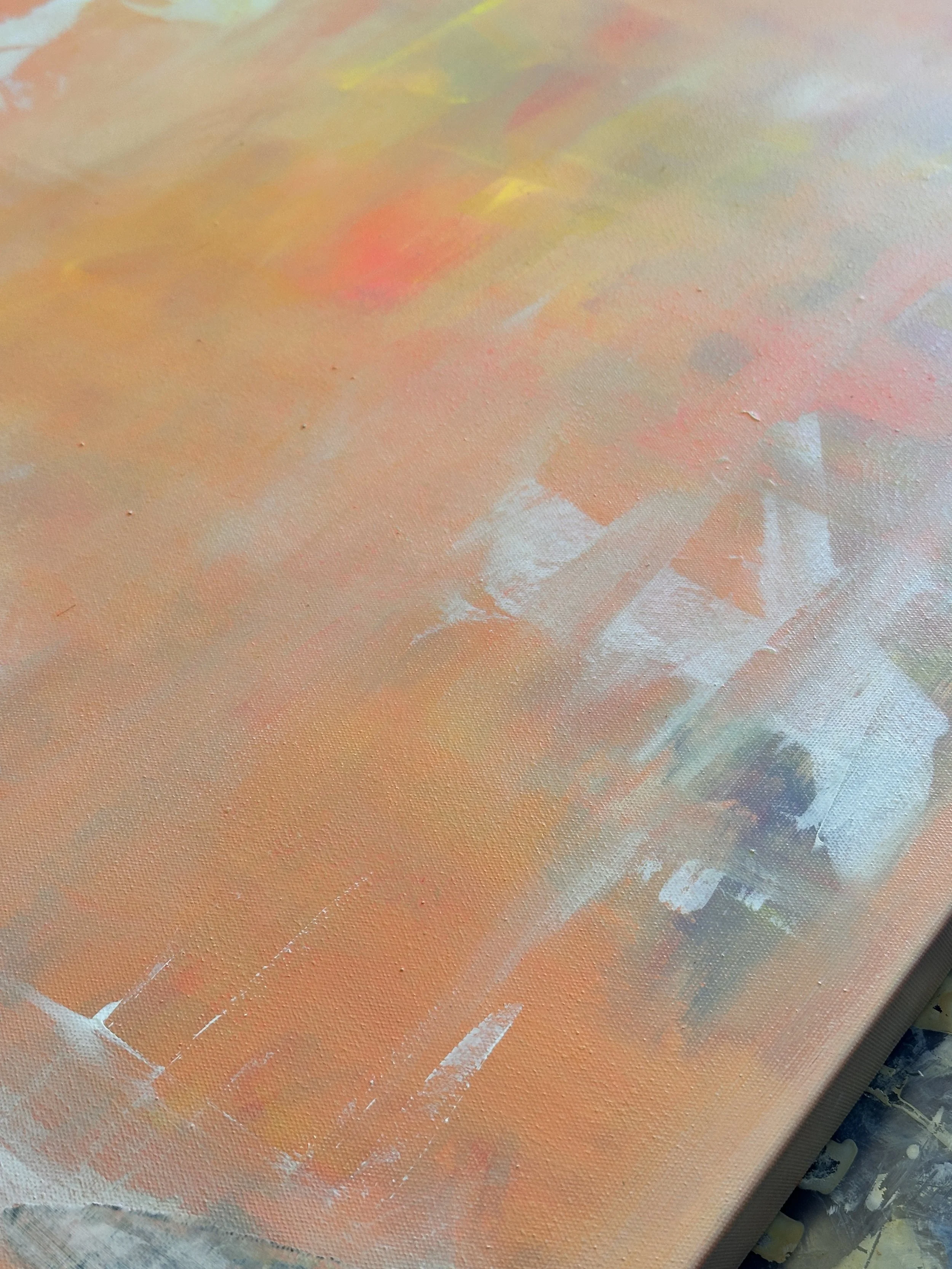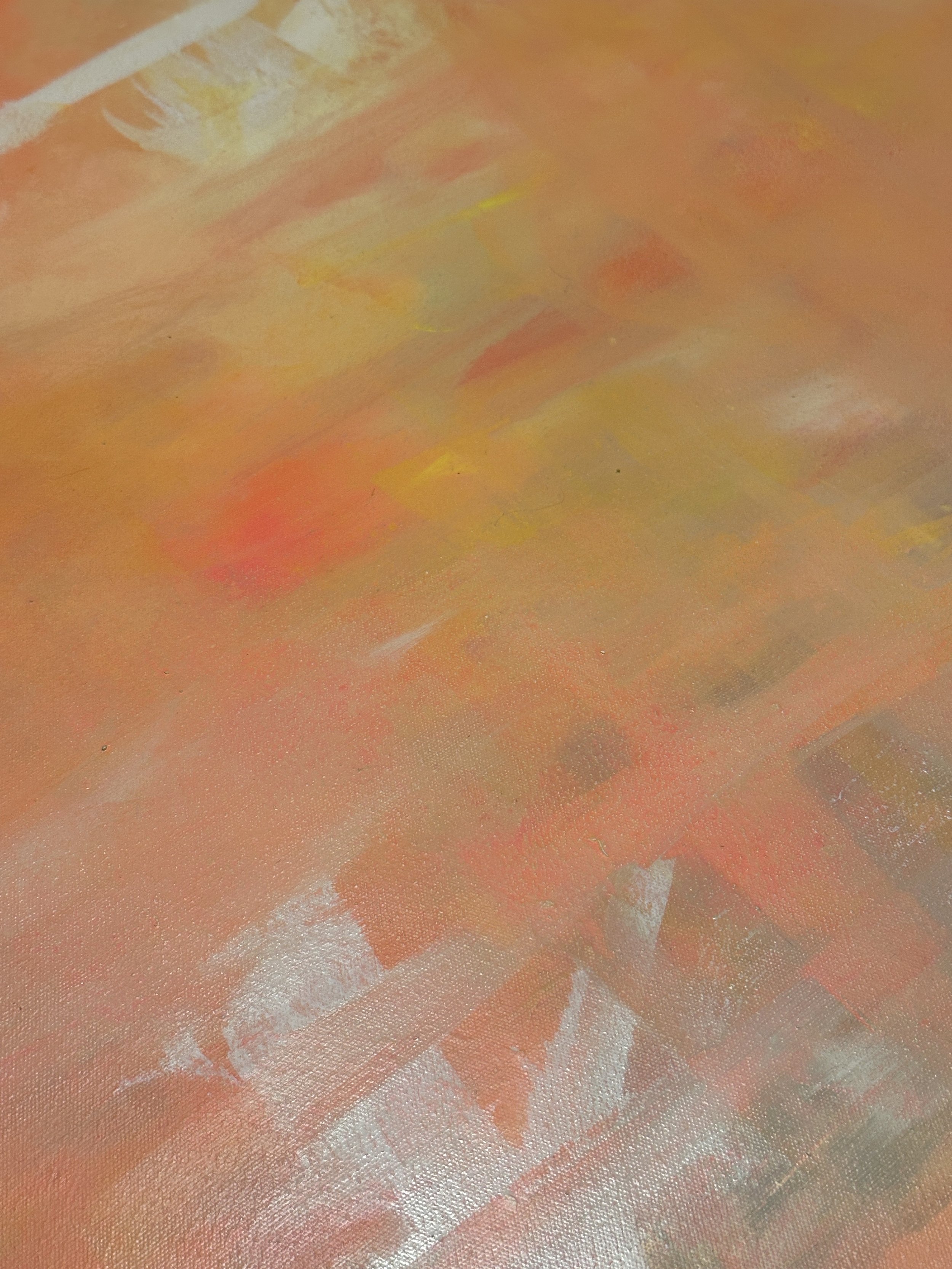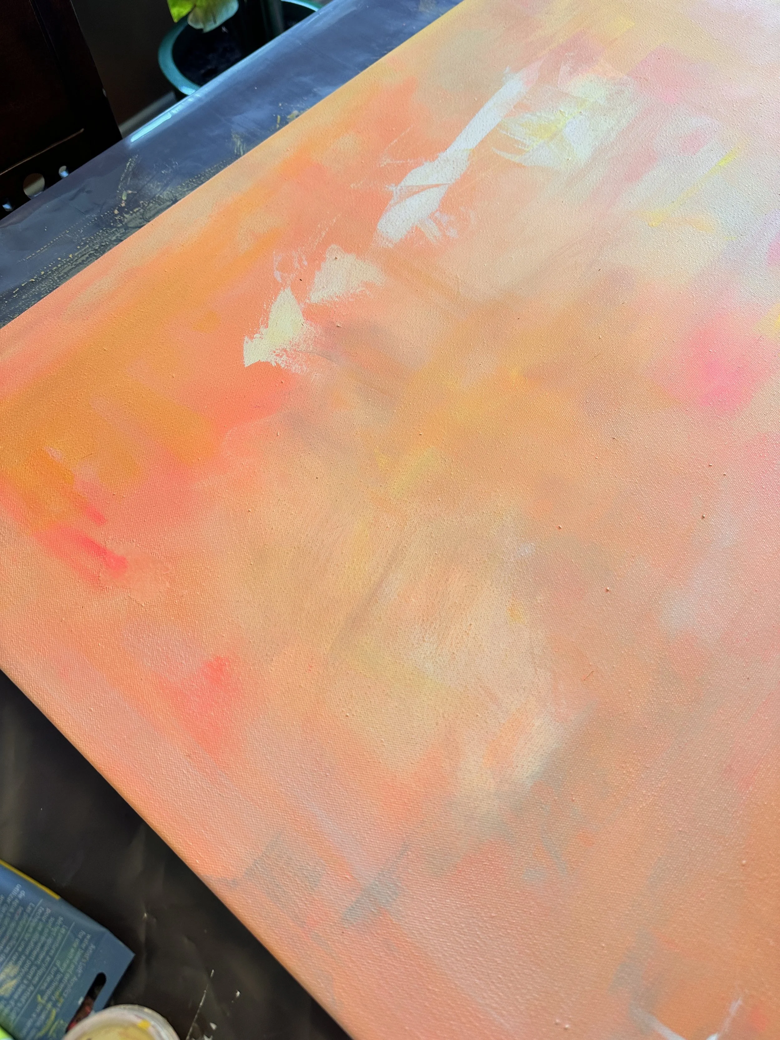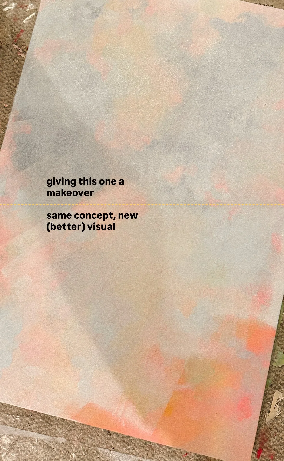 i painted version one of this near the end of 2024 and while i still feel the concept and liked some parts of the original colour palette (which i redid similarly), the visual wasn’t quite it. a year later, i primed the canvas mostly white and started from scratch but i left some of the colour showing through at that phase intentionally for a bit more depth to the story. emotions are always layered and emotional intelligence takes work to build.