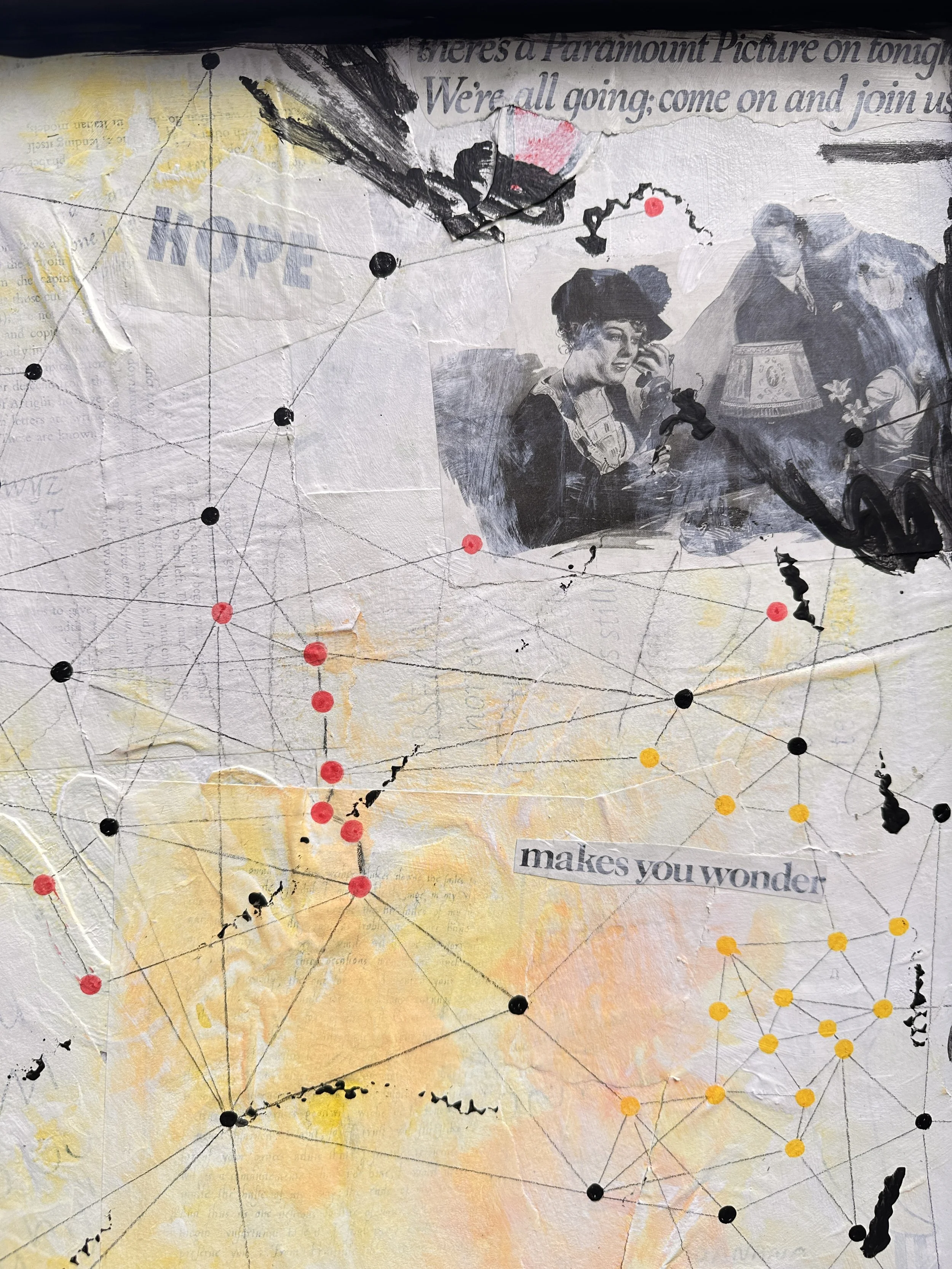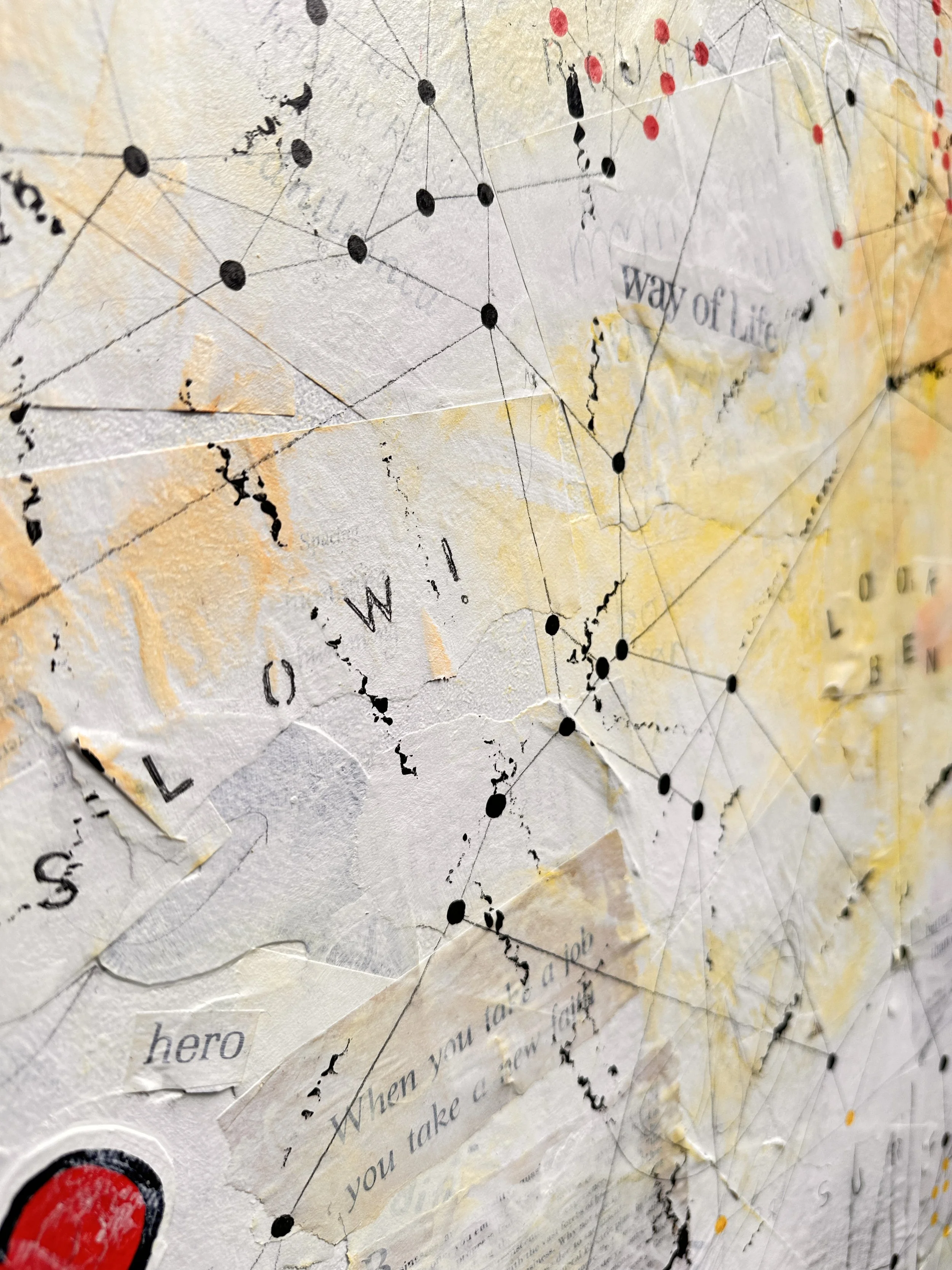 for the rest of it, I cut out specific parts of old books and magazines where the image or text caught my attention for this story and blended everything together with white/yellow paint as a symbol of optimism.