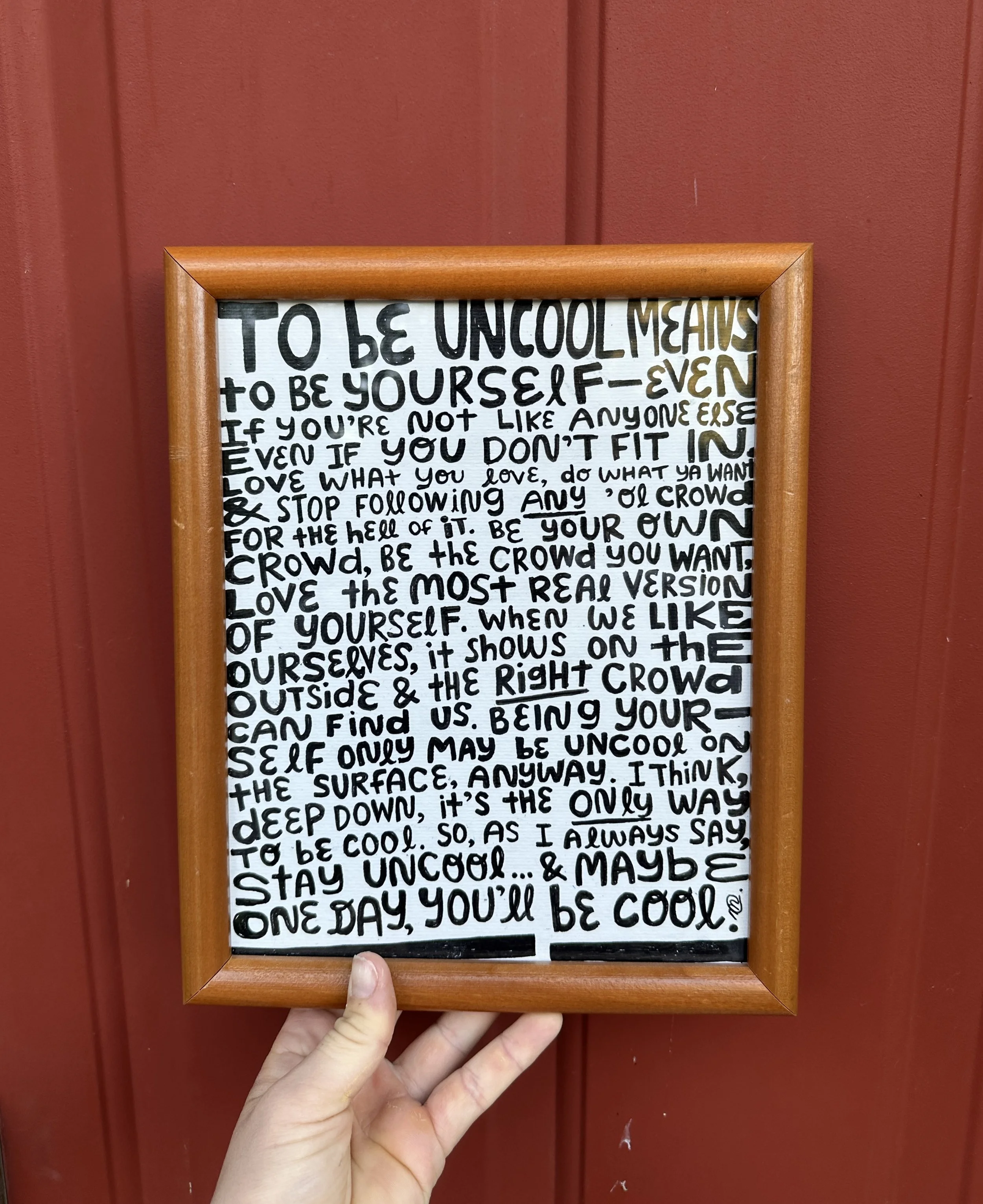 based on the idea that you’ve gotta embrace your most authentic self, even if it seems ‘uncool,’ if you ever want to be cool, follow your heart and dreams, make anything you love, and maybe change the world.