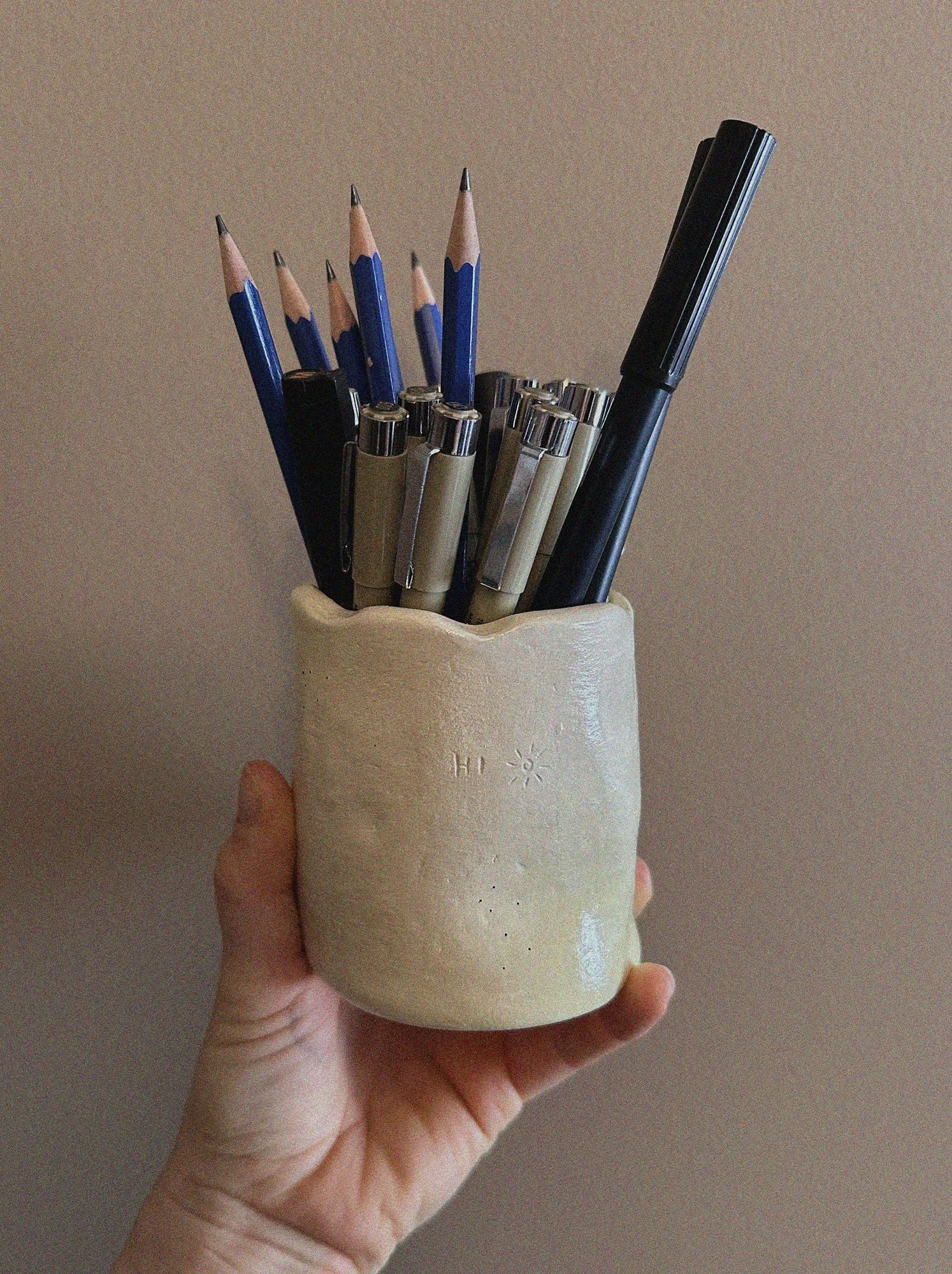 a pen/pencil holder is necessary for any artist/designer. as simple as this is, i carefully made this to be exactly the size that i needed it to be… too tall, short, narrow, or wide all bring terrible usability.