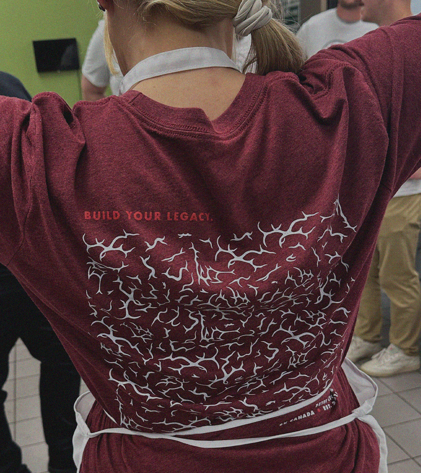 Below is the updated brand t-shirt, which includes an updated tagline, most common brand colour options for the shirt itself, and a great use for one of a few branded pattern backgrounds which were used in a variety of marketing materials.